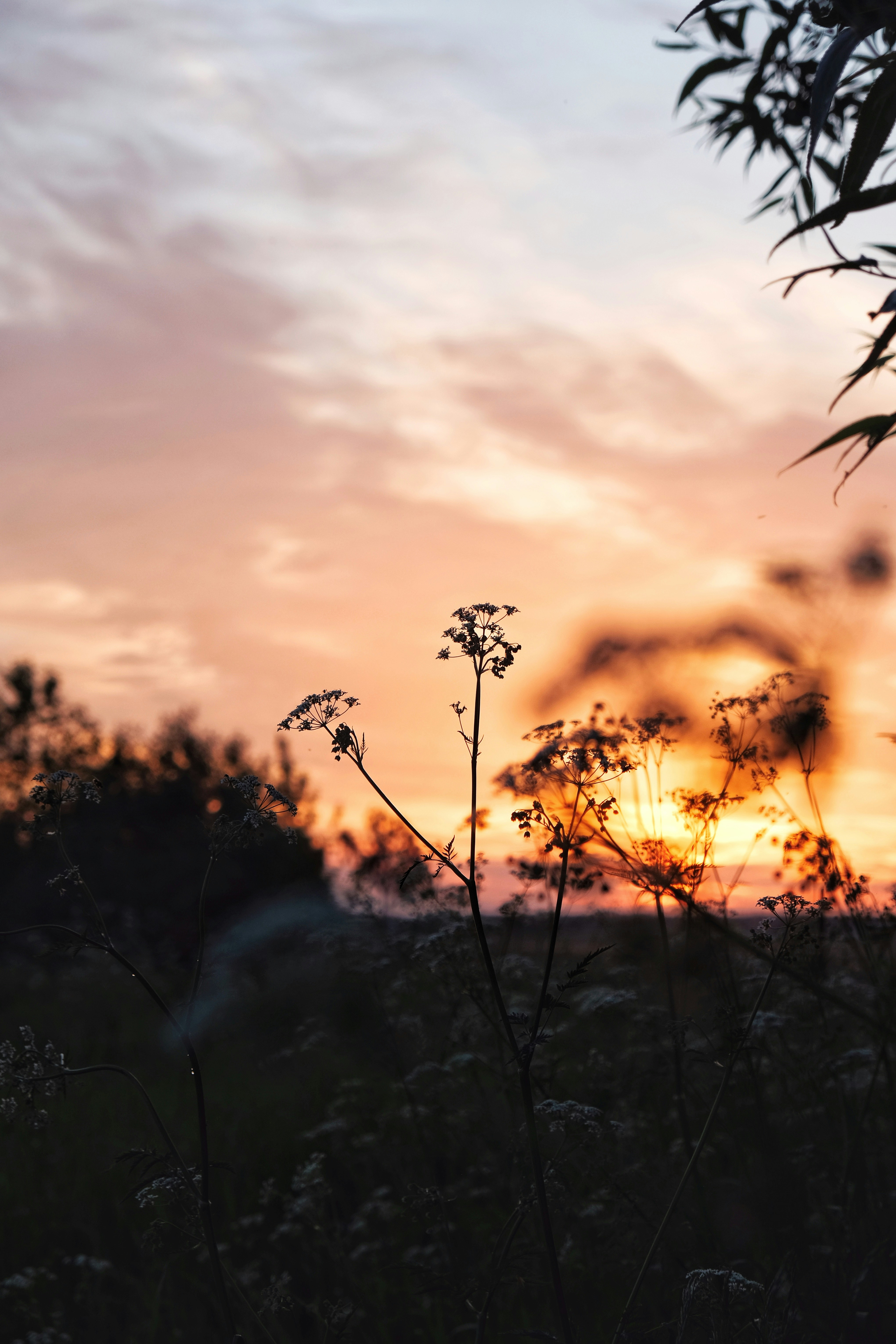 The sun is setting. The breeze is flowing. The serene grass is green.
