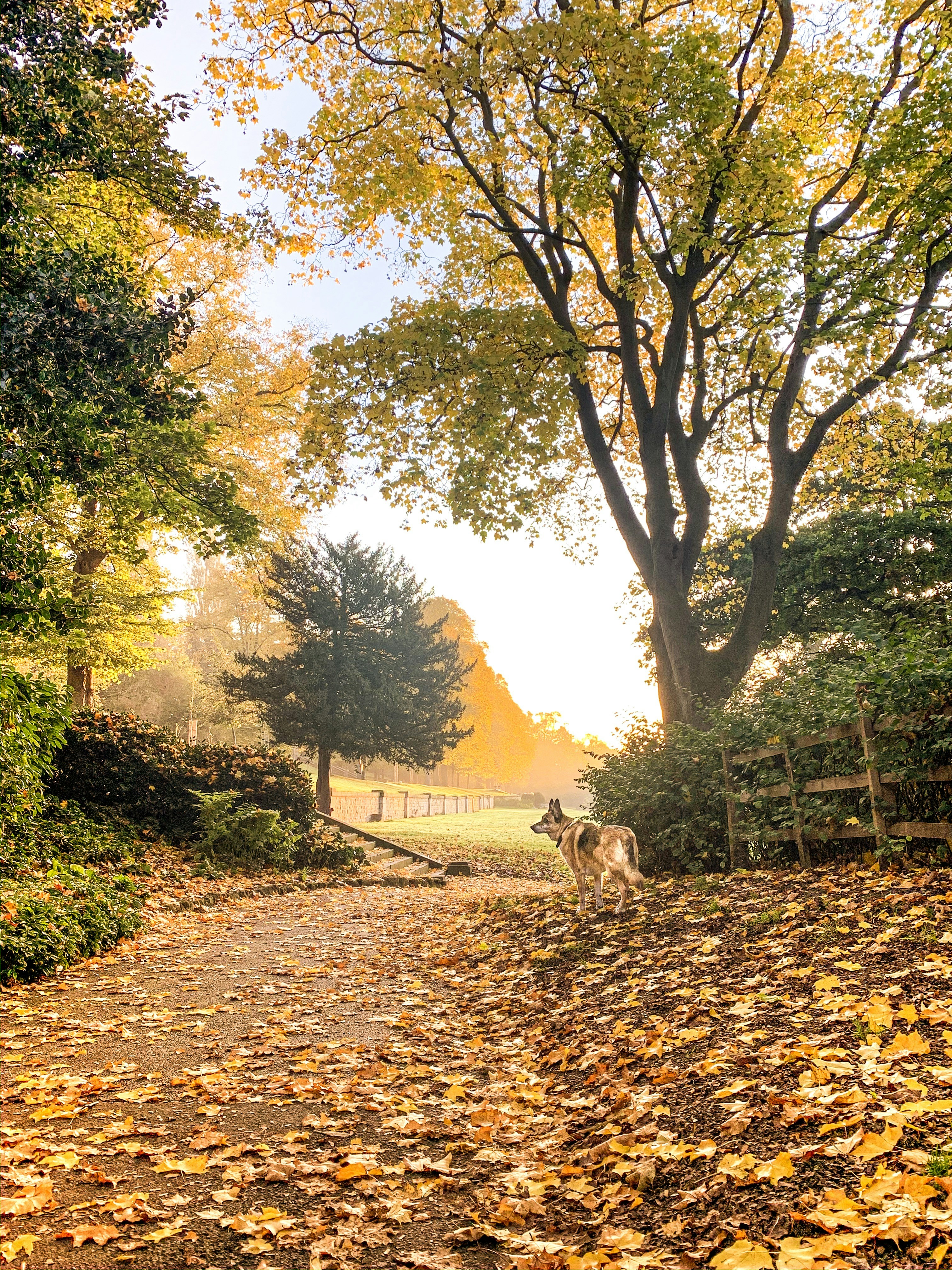 The crisp and crunch of walking on top of the fresh fall leaves.