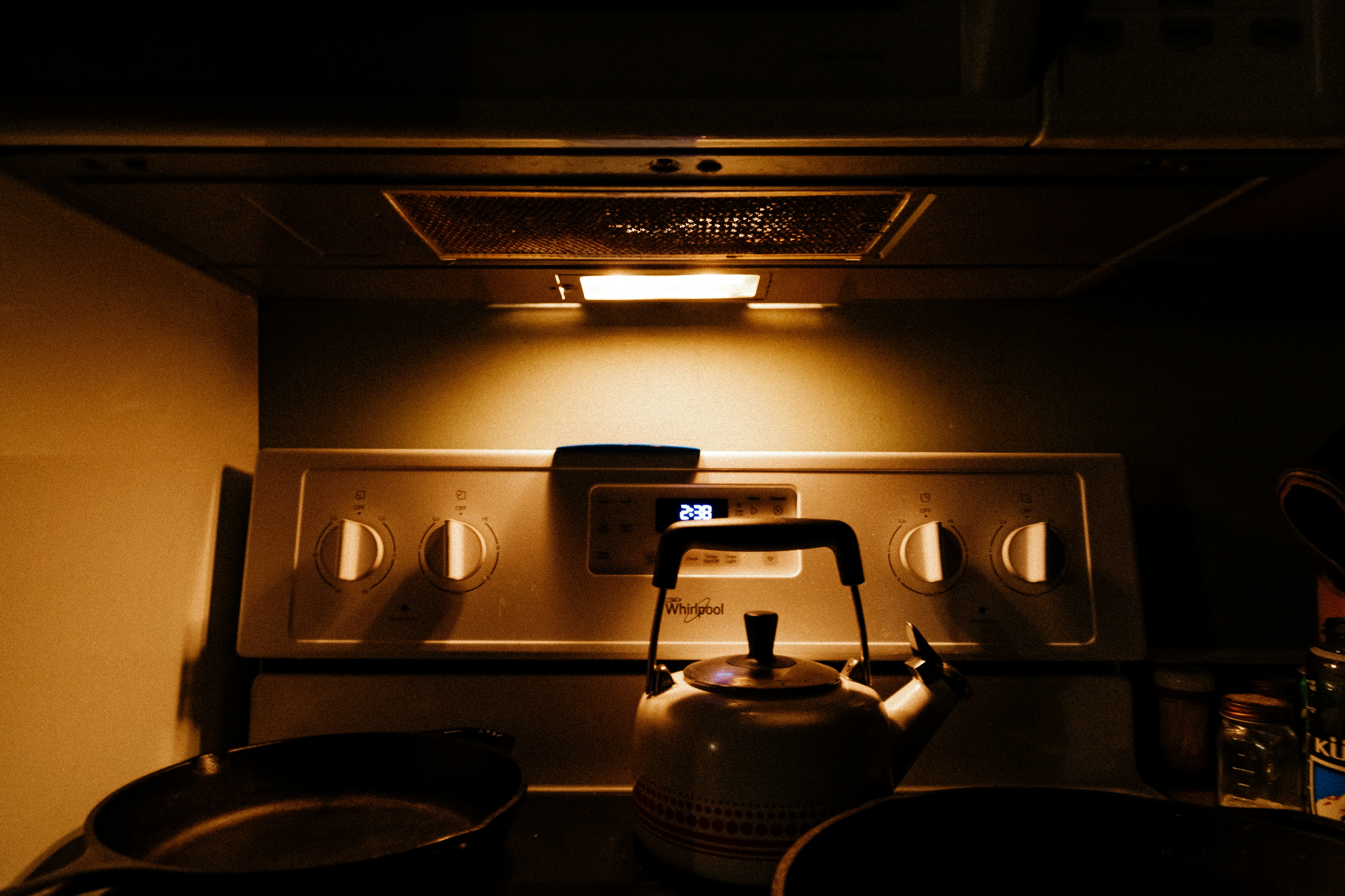 under warm stove lights.